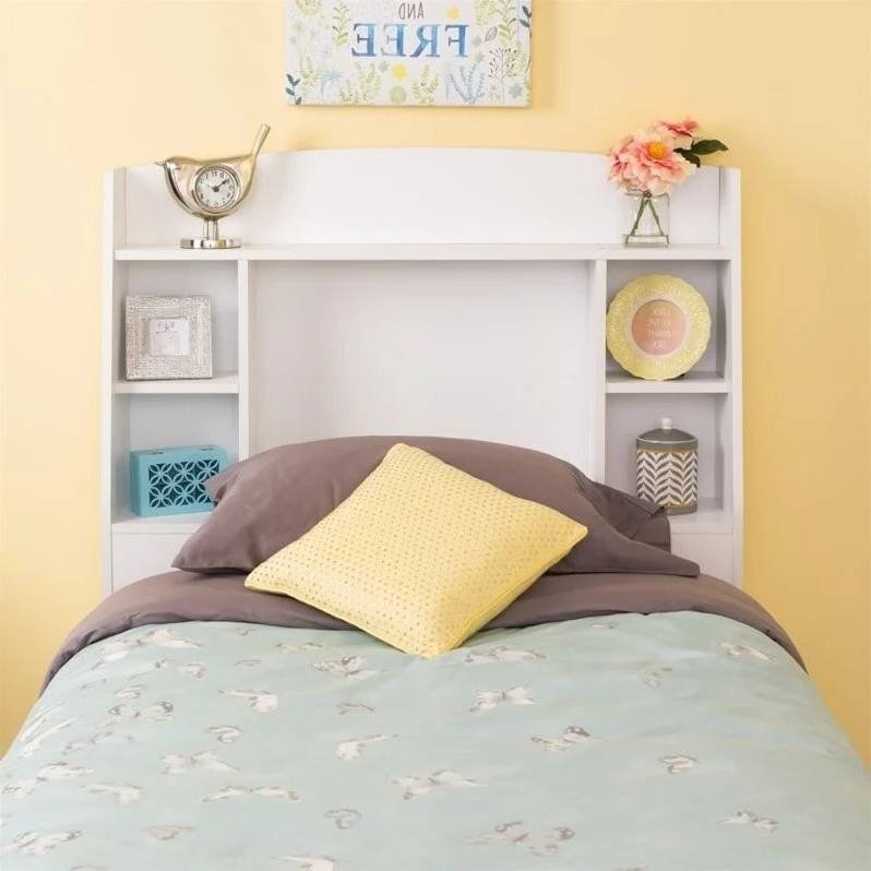 Twin size Bookcase Storage Headboard in White Wood Finish Twin size Bookcase Storage Headboard in White Wood Finish Twin size Bookcase Storage Headboard in White Wood Finish